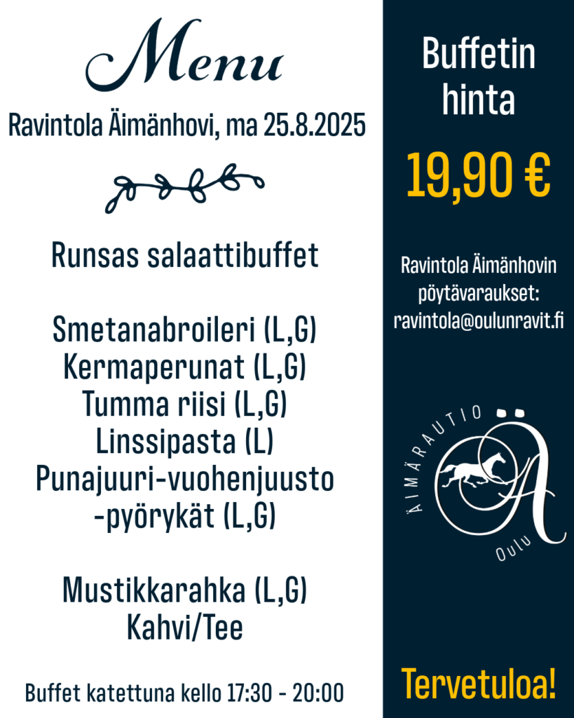 Pöytävaraukset osoitteesta ravintola@oulunravit.fi. Tervetuloa!