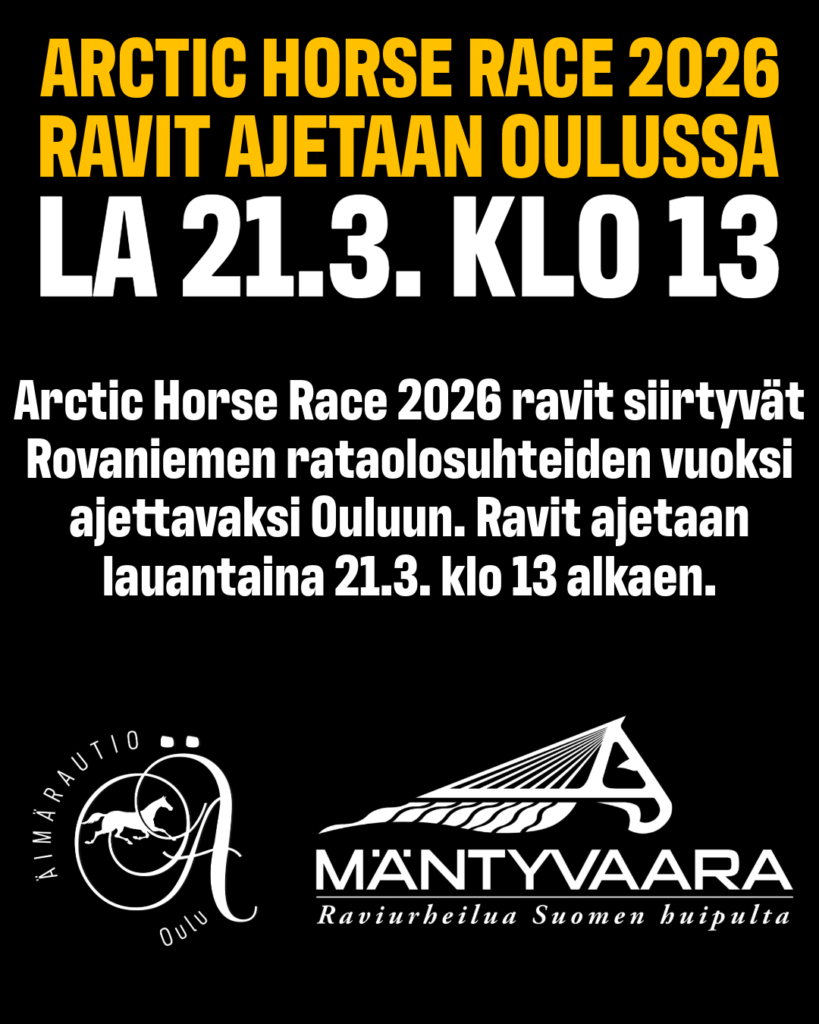 Arctic Horse Race 2026 ravit siirtyvät Rovaniemen rataolosuhteiden vuoksi ajettavaksi Ouluun. Ravit ajetaan lauantaina 21.3. klo 13 alkaen.